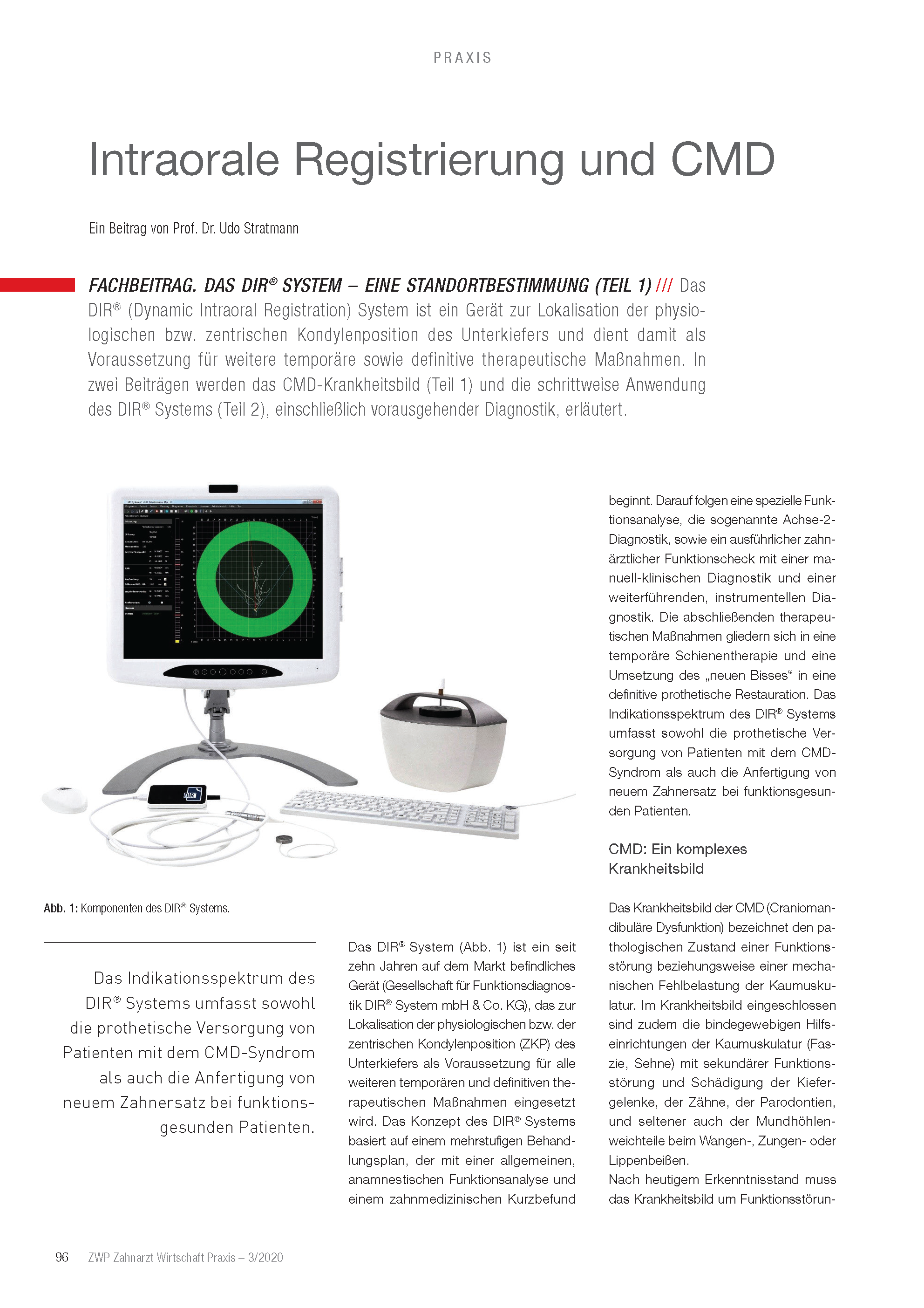 Technical article Not all rails are the same Specialist article by Dr. med. dent. Farina Blattner, MSc. DIR_ZWP_3_23-1Download CMD: Splints with function and effectiveness Specialist article by Dr. med. dent. Farina Blattner, MSc. cmd-rails-with-effectiveness-and-function-11_18Download Intraoral registration and CMD Part 1 Expert article by Prof. Dr. Udo Stratmann ZWP-Prof. Stratmann-Part-1Download Intraoral registration and CMD Part 2 Expert article by Prof. Dr. Udo Stratmann ZWP-Prof. Stratmann-Part-2Download